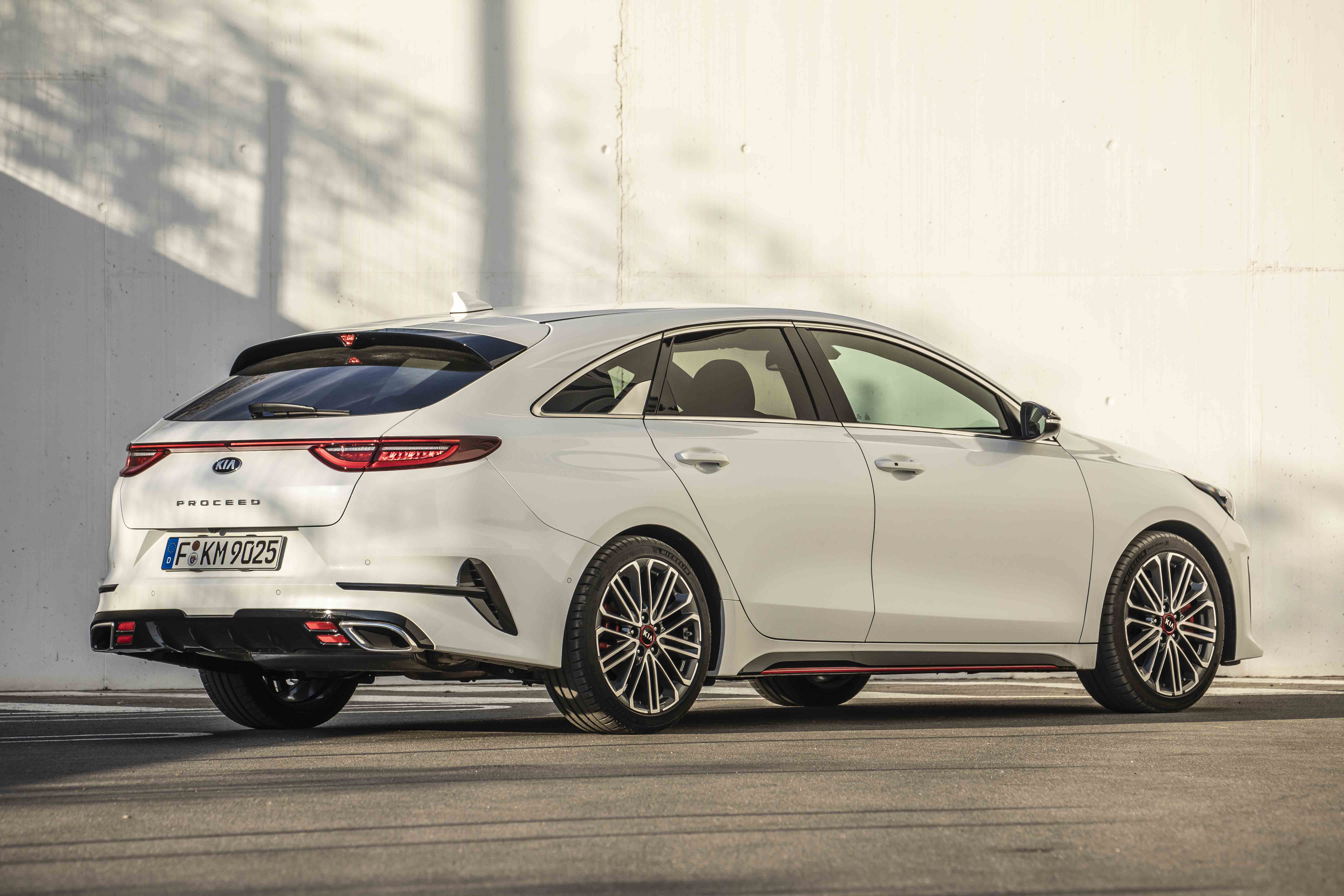 A KIA Proceed conta com uma frente semelhante à do KIA Ceed convencional, mas temos uma altura ao solo reduzida, um maior comprimento e maior distância entre eixos. As janelas laterais são mais pequenas devido ao formato do tejadilho que “desce até à traseira” num estilo coupé. Ainda nas laterais temos uma linha de cintura mais “subida” e curvilinea e saias mais “vistosas” que oferecem um aspecto mais desportivo e radical à KIA Proceed. É na traseira que está a grande alteração onde encontramos uma tampa da bagageira bastante curva, um óculo traseiro inclinadissimo e um spoiler traseiro, um difusor e duas saídas de escape dignas de um verdadeiro desportivo. A grande novidade são também os farolins traseiros mais finos que se unem através de uma linha LED que atravessa toda a tampa da bagageira.