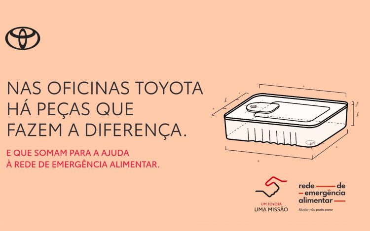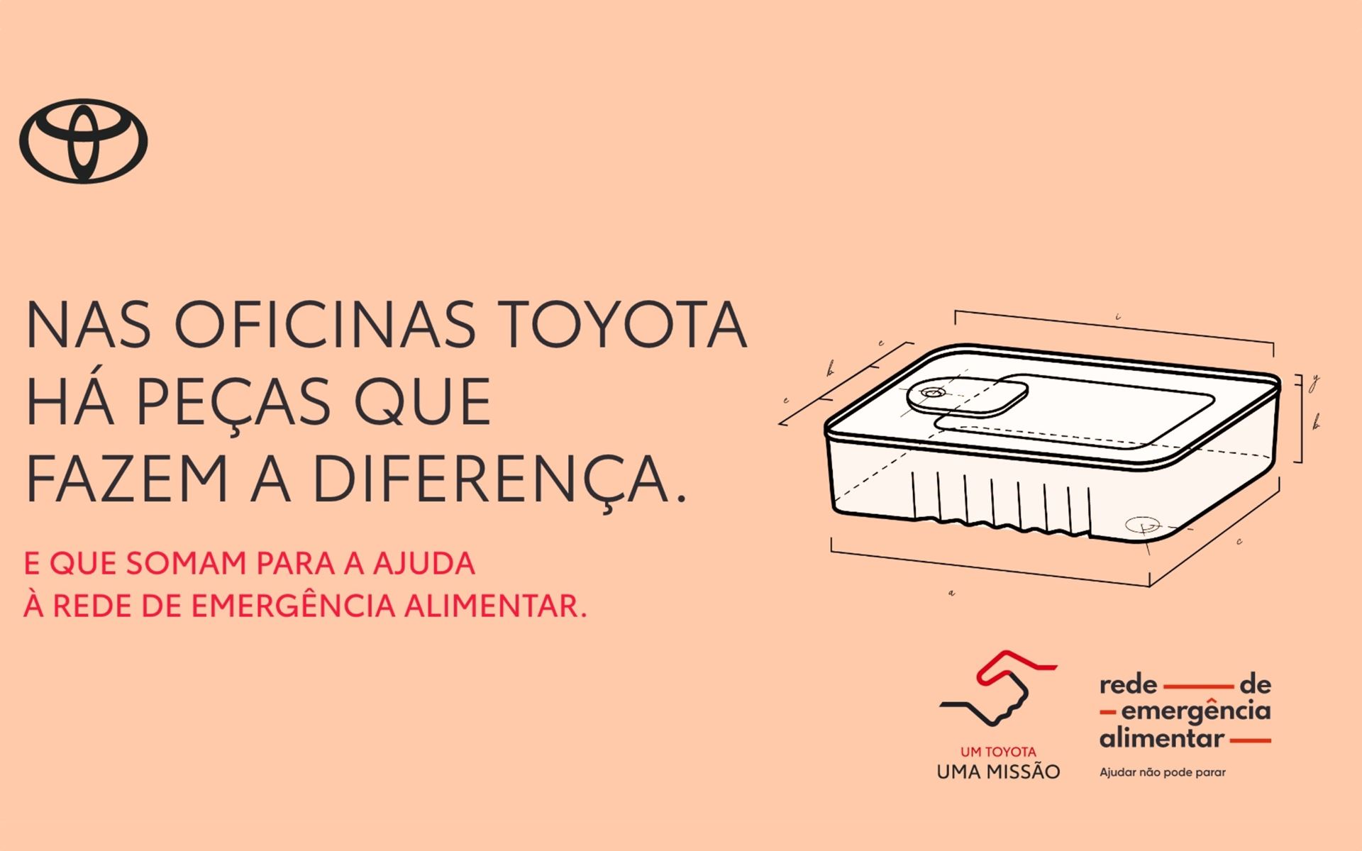 A Toyota quer envolver os seus clientes nesta missão, levando a campanha para as suas oficinas, com o mote: “Nas oficinas Toyota, há peças que fazem a diferença. E alimentam esta causa”. Por cada serviço de mecânica faturado, a Toyota irá doar 1€ que será convertido em cabazes alimentares. O que parece simbólico, quando somado, pode fazer toda a diferença em pratos mais cheios, copos mais nutritivos e mais sorrisos felizes. O objetivo é ajudar o maior número de pessoas.