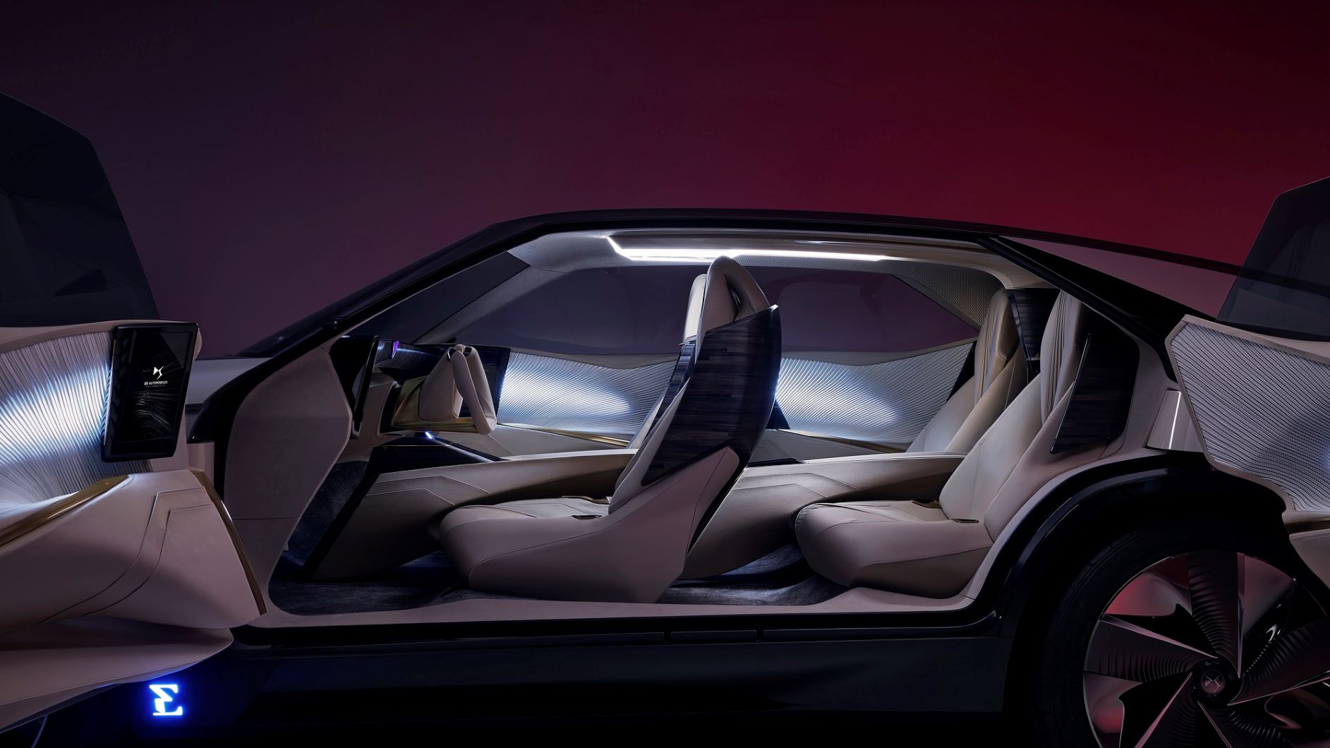 O DS AERO SPORT LOUNGE representa uma lufada de ar fresco suportada pelo ‘savoir-faire’ francês. Este protótipo revela uma nova silhueta destinada a valorizar a eficiência aerodinâmica, transmitindo visualmente uma sensação de vanguarda e de desejo. Para além de uma presença imponente, devido às rodas de grandes dimensões e às linhas bem esculpidas, o DS AERO SPORT LOUNGE possui um habitáculo de alta-costura, construído com materiais sustentáveis como o algodão acetinado e marchetaria de seda e palha. Abdicando dos tradicionais ecrãs no painel de instrumentos, as informações passam a ser projetadas em grandes superfícies nobres. O condutor interage com os sistemas através de linguagem gestual, captada por ultrassons.