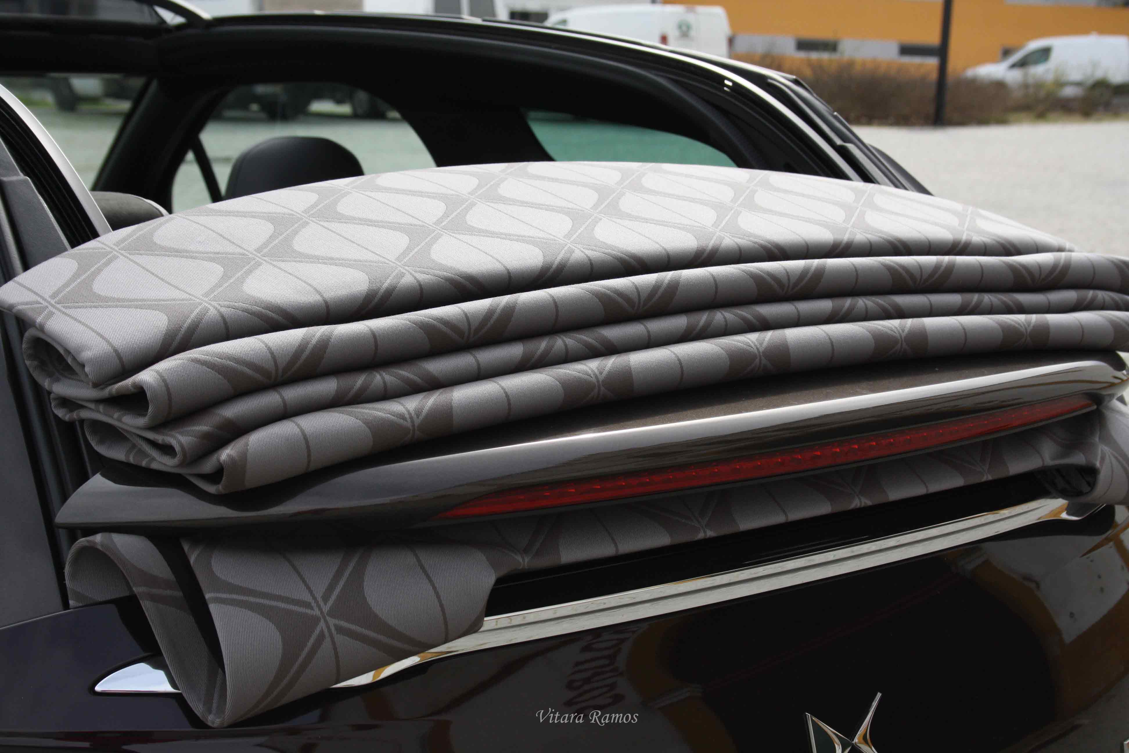 No que toca à capota existem duas opções de cores, ou preto ou a das fotografias que é apelidada de: “Capota em Trama DS com aros Castanho Topaze” Esta capota tem boa qualidade, oferece uma boa insonorização e conforto, só está disponivel em 6 cores de carroçaria. Sendo que a capota preta está disponivel em todas as 9 cores. A capota é recolhida com um botão, uma acção que pode ser efectuada em andamento.