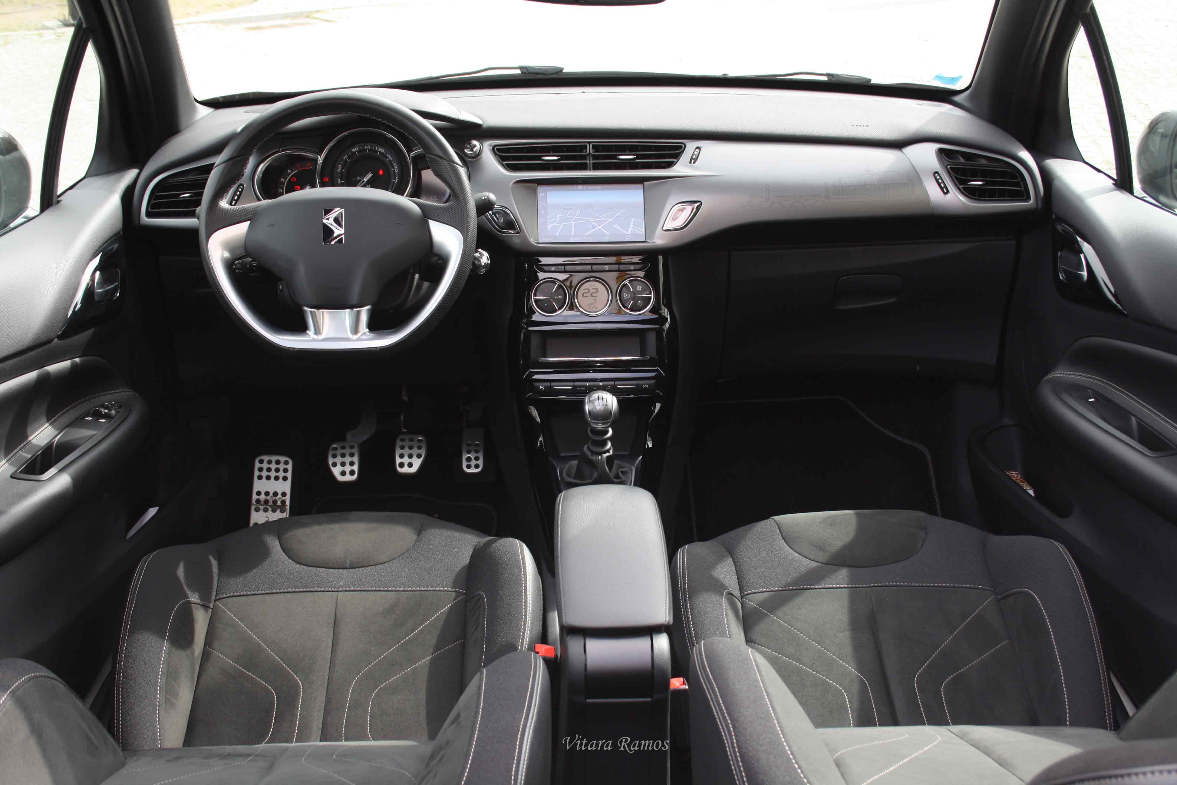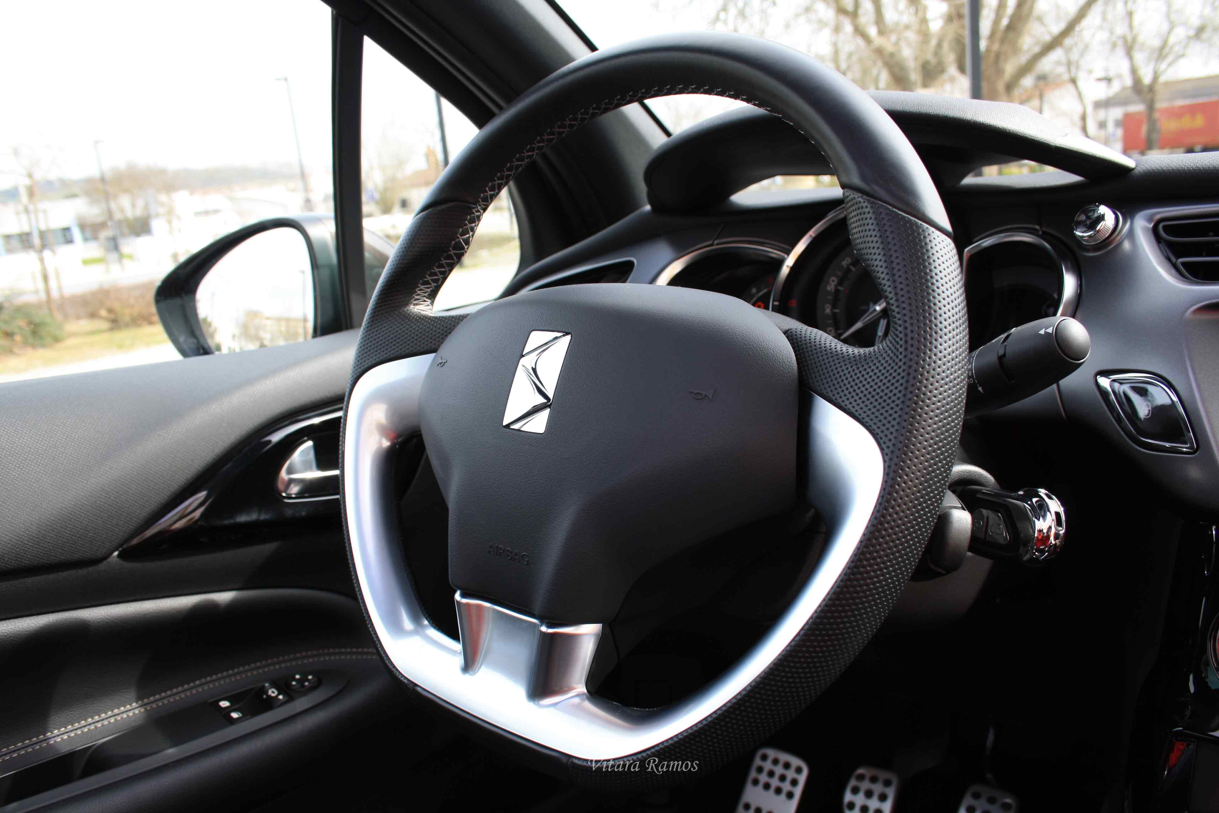O interior do DS3 é bastante harmonioso, acolhedor e cheio de pormenores. O volante podia ser ligeiramente mais pequeno, mas conta com uma boa pega e um desenho bastante desportivo, as aplicações em plástico seriam para nós desnecessárias, mas tem algo que é bastante raro nos tempos que correm… O volante não tem botões! Os pedais são em alumínio e a maneta da caixa de velocidades tem uma boa pega, com um tacto bastante agradável.