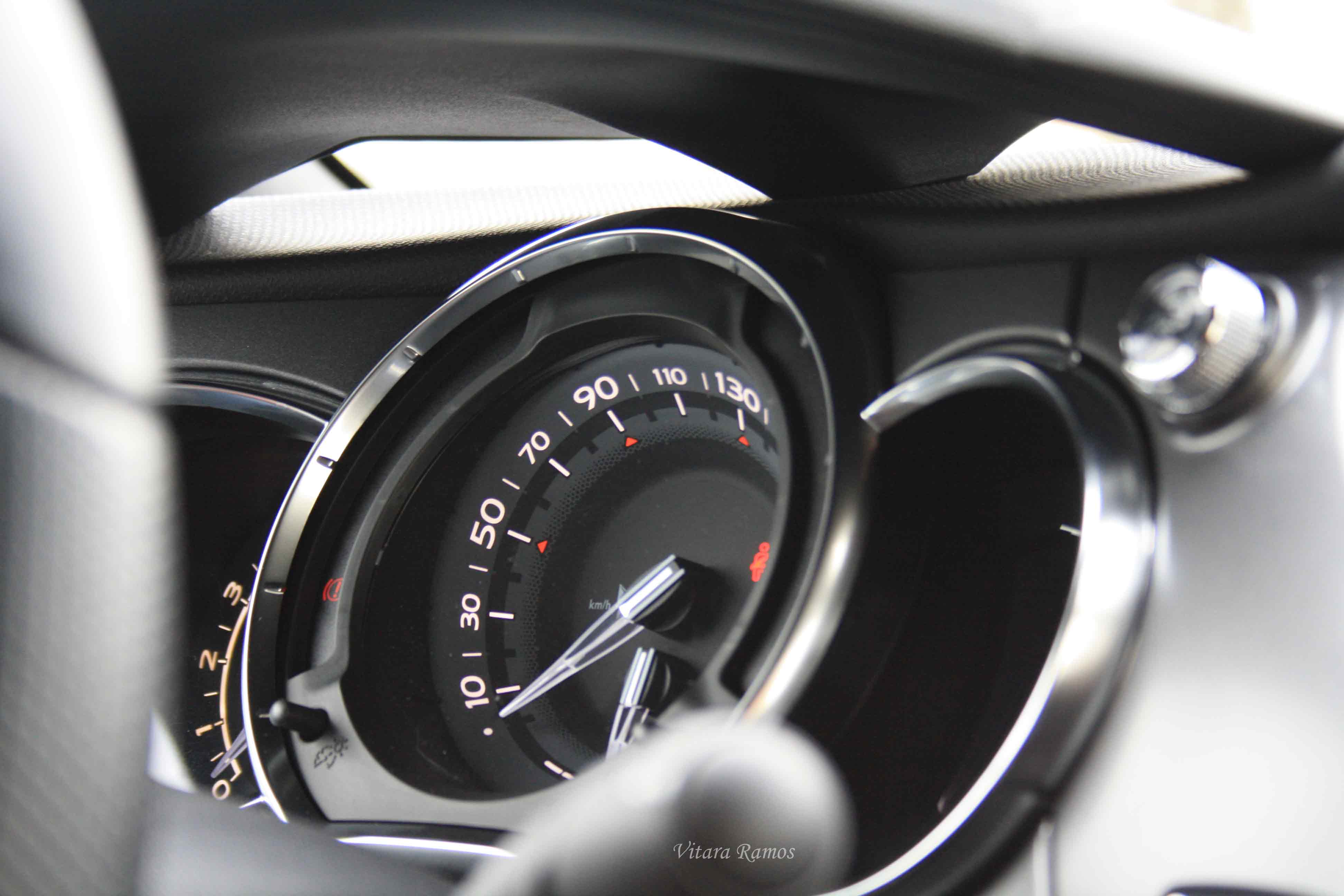 O painel de instrumentos é bastante simples, oferece as informações principais como: consumo de combustível, dados da viagem… Mostra de forma clara a velocidade e as rotações.