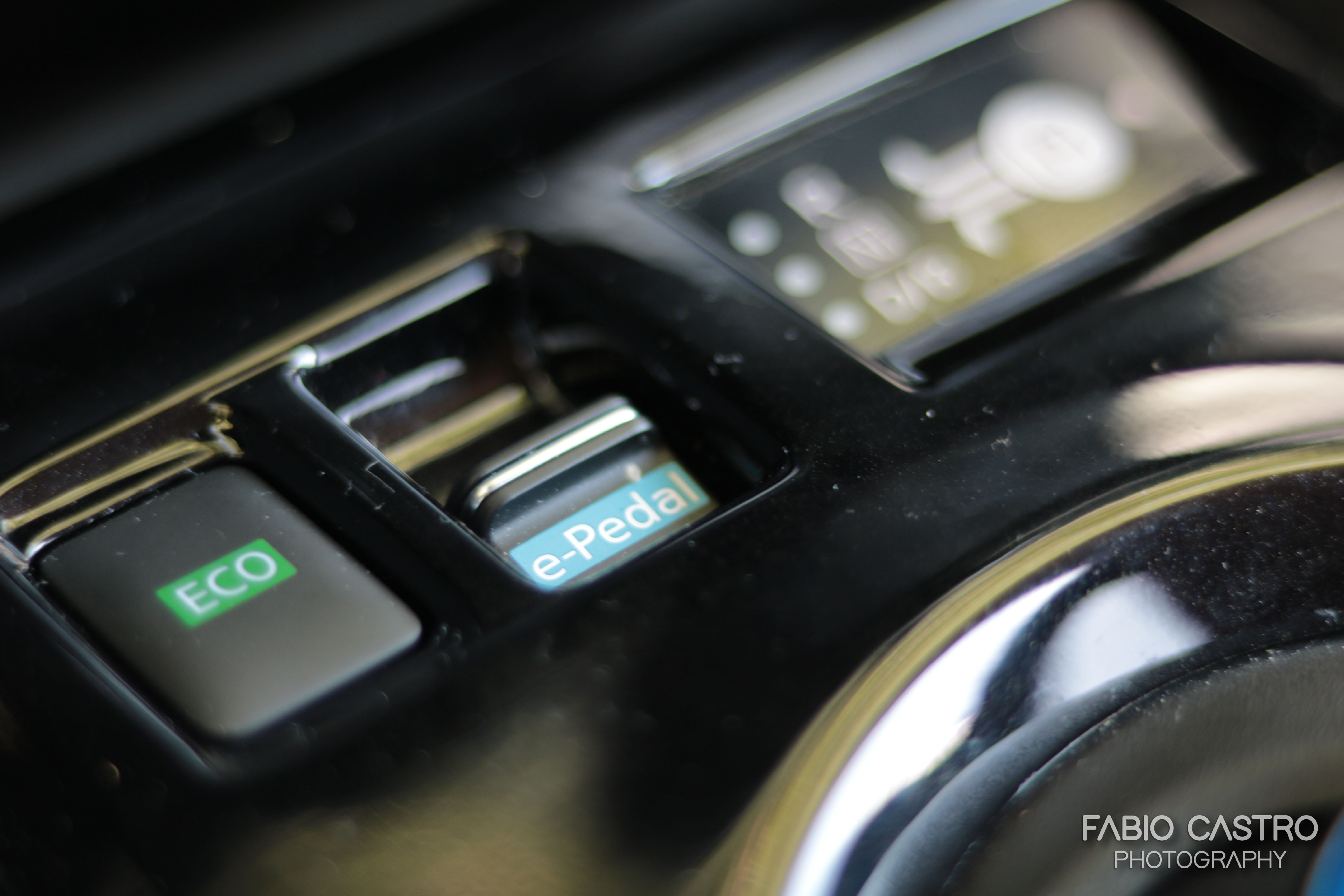 O botão do modo “ECO” vai reduzir a eficiência do ar-condicionado automático, assim como vai reduzir a resposta do acelerador, para que consigamos ter mais alguns quilómetros de autonomia. Outra forma de o conseguirmos é através da utilização do “E-Pedal”, accionado por um botão, torna a travagem tão forte quando tiramos o pé do acelerador, que praticamente não precisamos de utilizar o pedal do travão, apesar de requerer algum hábito, esta solução pode aumentar a autonomia através da travagem regenerativa que se torna mais poderosa.