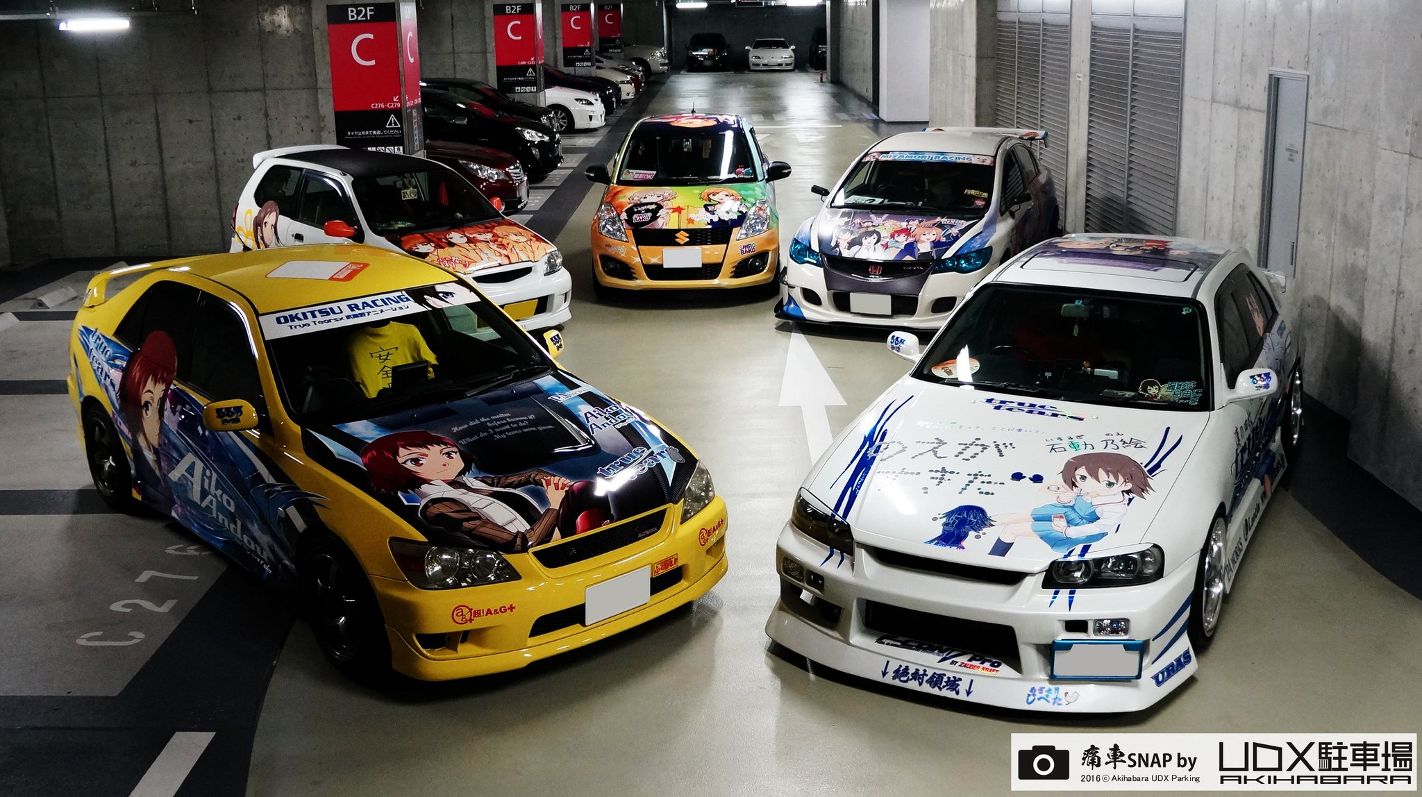 Sabemos que no Japão a “cultura” dos automóveis vê-se em toda a parte. À noite, os parques de estacionamento transformam-se em autênticos “showrooms” onde aparecem os automóveis mais raros e mais personalizados possível. Nesta garagem em Tóquio reina o tema “Anime”.