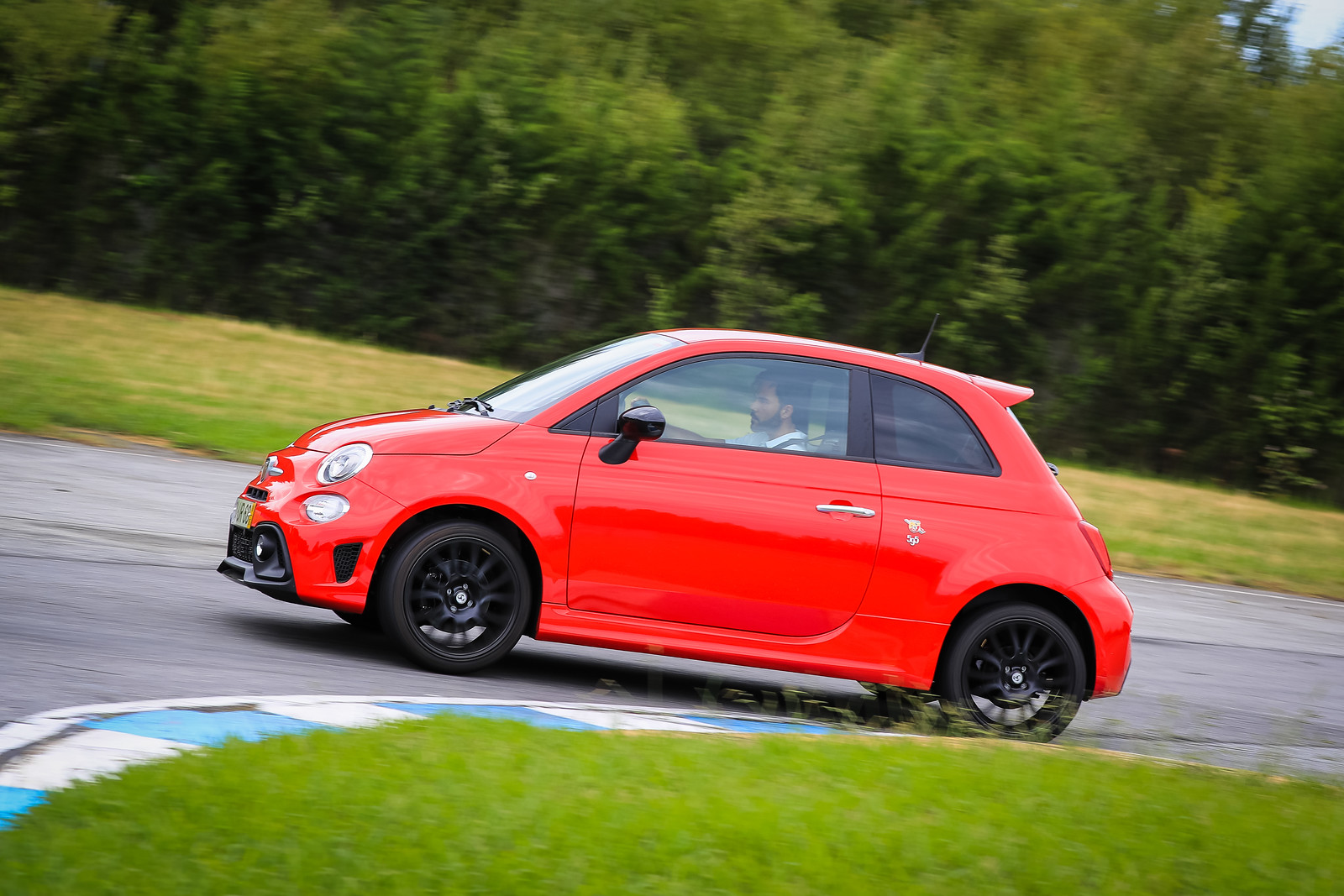 Todos os modelos Abarth exibem outro logótipo na parte traseira dos painéis laterais que repete o importante emblema que as viaturas de competição Abarth têm orgulhosamente exibido desde os anos 60. Este logótipo retoma o típico escudo Abarth amarelo e vermelho a enquadrar o escorpião e acrescenta um relâmpago com as cores da bandeira italiana. É uma sincera homenagem ao empenho da Abarth na competição, empenho esse que sempre foi visto, desde os primeiros dias, como terreno de experimentação de soluções técnicas e tecnológicas inovadoras destinadas a aumentar o desempenho e a fiabilidade dos carros de competição da Abarth e que posteriormente iriam beneficiar os modelos de produção em série.
