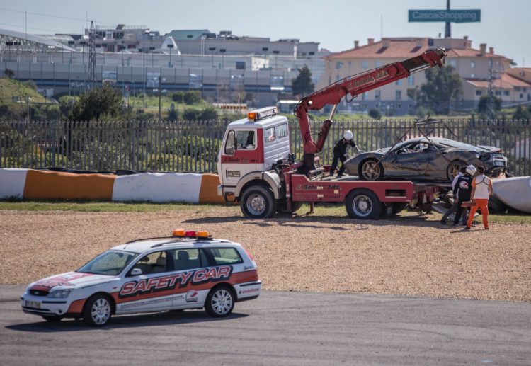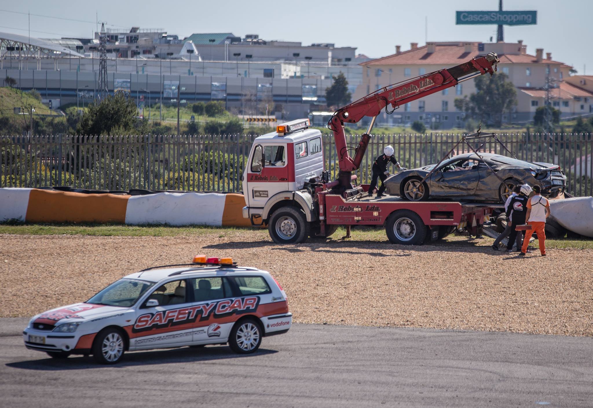 De louvar foi o trabalho das equipas de assistência do autódromo do Estoril. De forma rápida deram assistência aos dois ocupantes deste 488GTB, mostrando assim que os circuitos são o local ideal para acelerar em segurança.