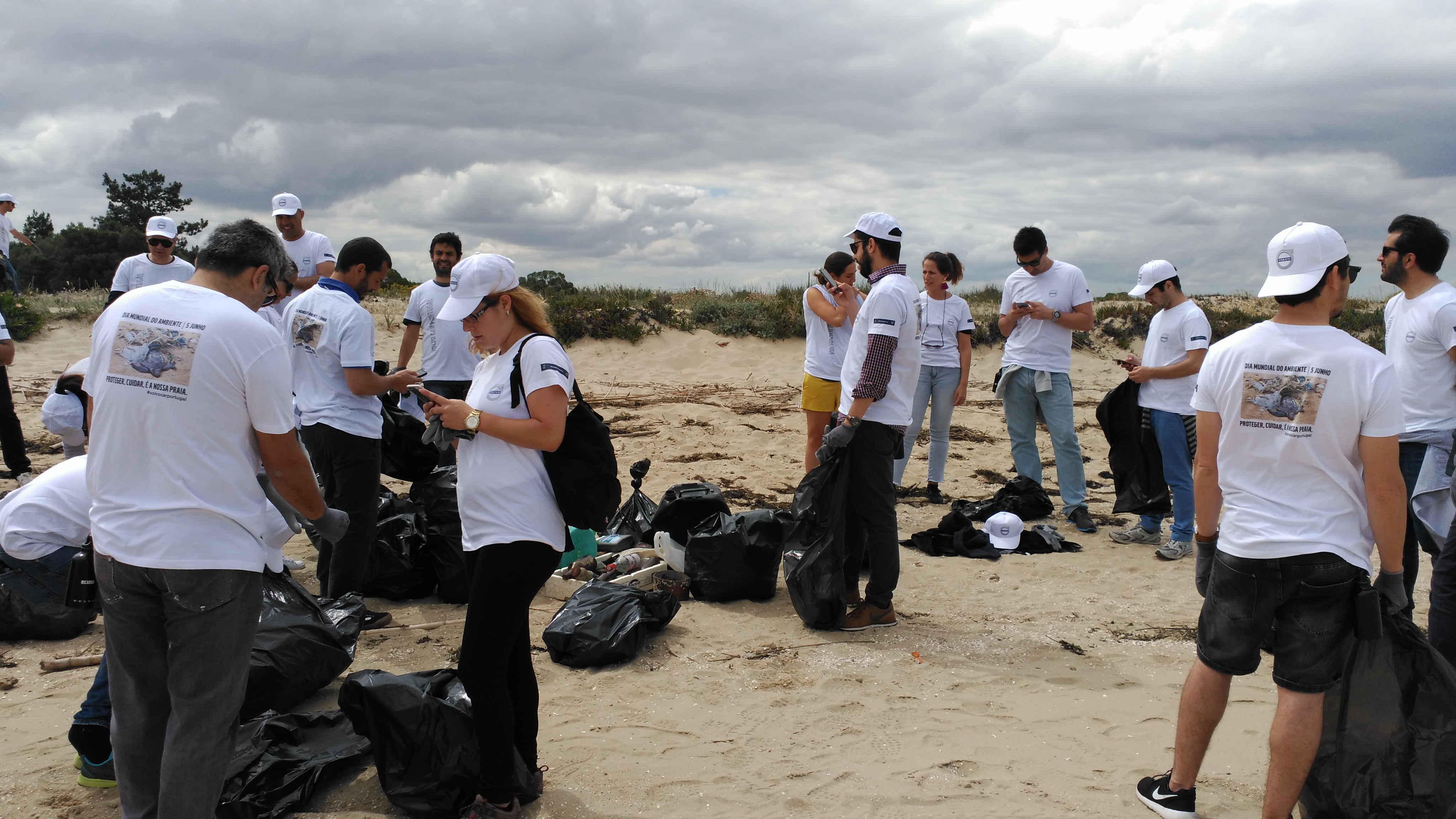 Na manha de terça-feira não só a Volvo Portugal e os meios da imprensa limparam Praias, como em todo o mundo, funcionários da Volvo fizeram-no de forma a ajudar a acabar com este fenómeno que é prejudicial para o ambiente e para a saúde.