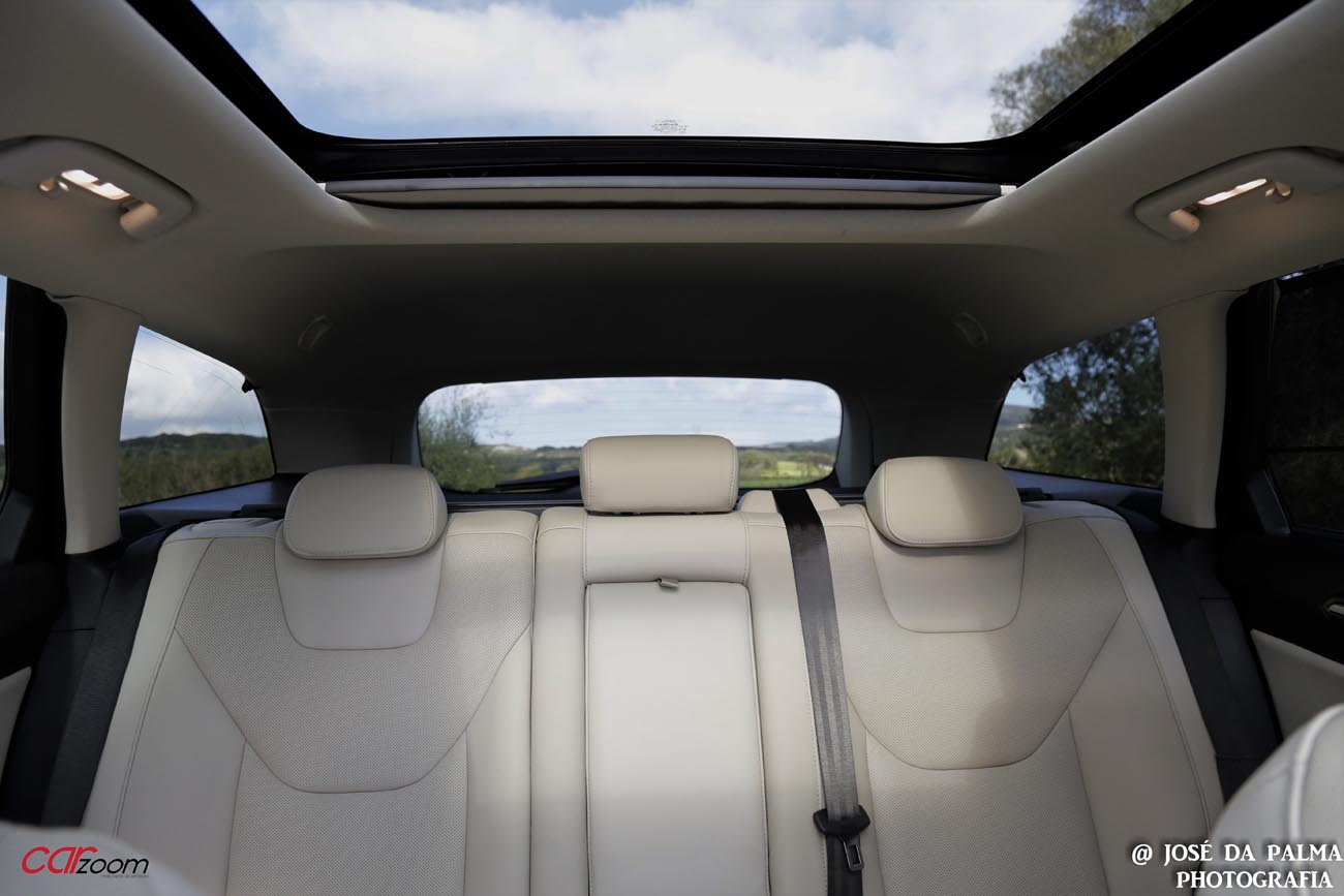 No interior, repete-se a qualidade e o design que encontramos no exterior, um automóvel bem concebido, com tudo “à mão de semear”, com equipamento para dar e vender e com um conforto digno de registo. Os materiais são bons e agradáveis ao toque, não encontramos barulhos parasitas e a robustez está sempre presente. Os assentos dianteiros incluem sistema de massagem, já para não falar do facto de serem bastante confortáveis e de terem cintos traseiros “insufláveis”. Podemos ainda construir todo um ambiente através da iluminação e do tejadilho panorâmico de dimensões generosas.