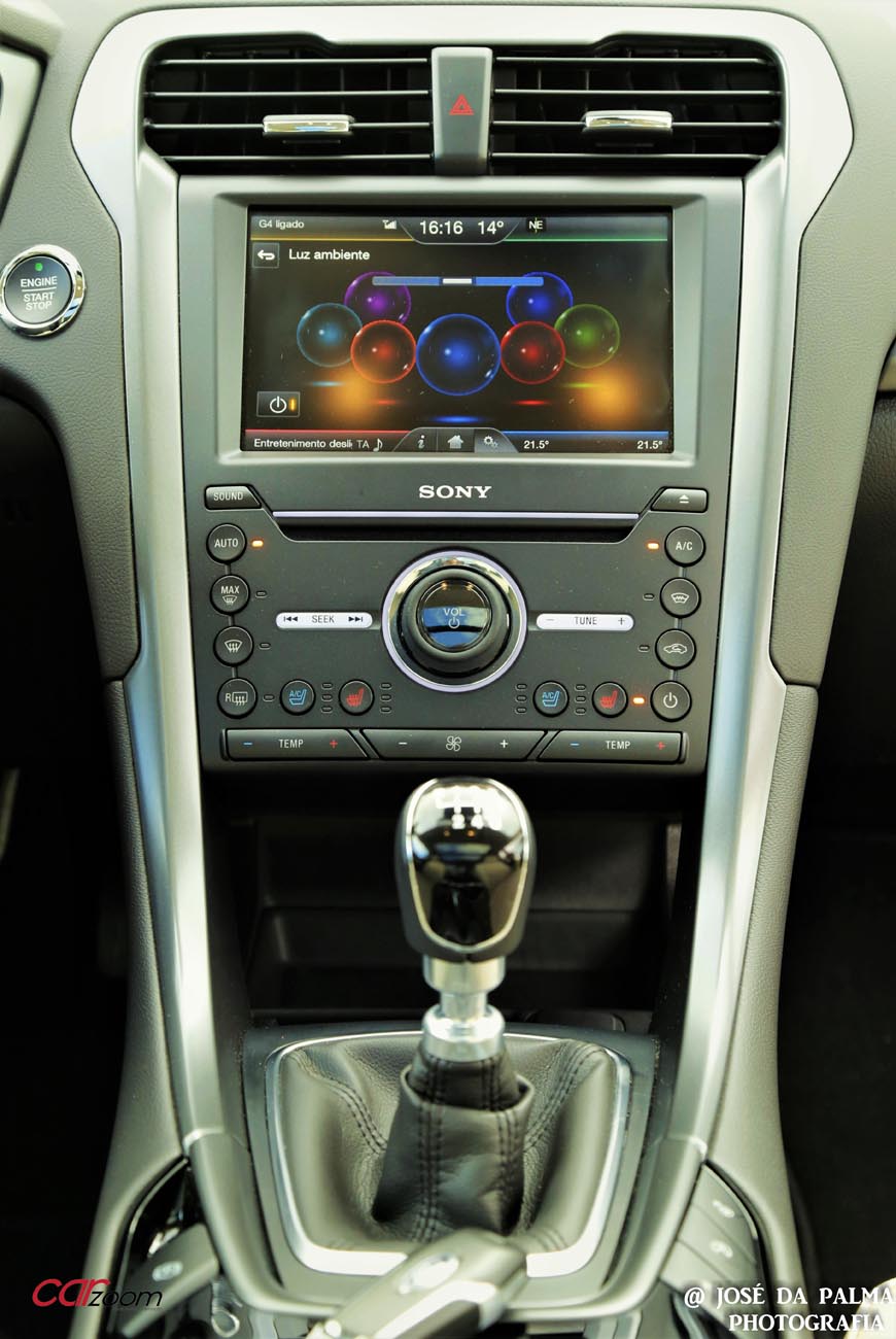 O sistema de informação e multimédia Ford Sync 2 é muitíssimo completo, embora requeira alguma habituação. O controlo por voz é dos mais eficazes, senão o mais eficaz, permite-nos controlar: o rádio, a navegação e a climatização. O ecrã táctil de 8 polegadas da Sony tem uma boa definição. Para colocar a cereja no topo do bolo, a Ford Mondeo conta ainda com um sistema de som da Sony com 8 colunas.