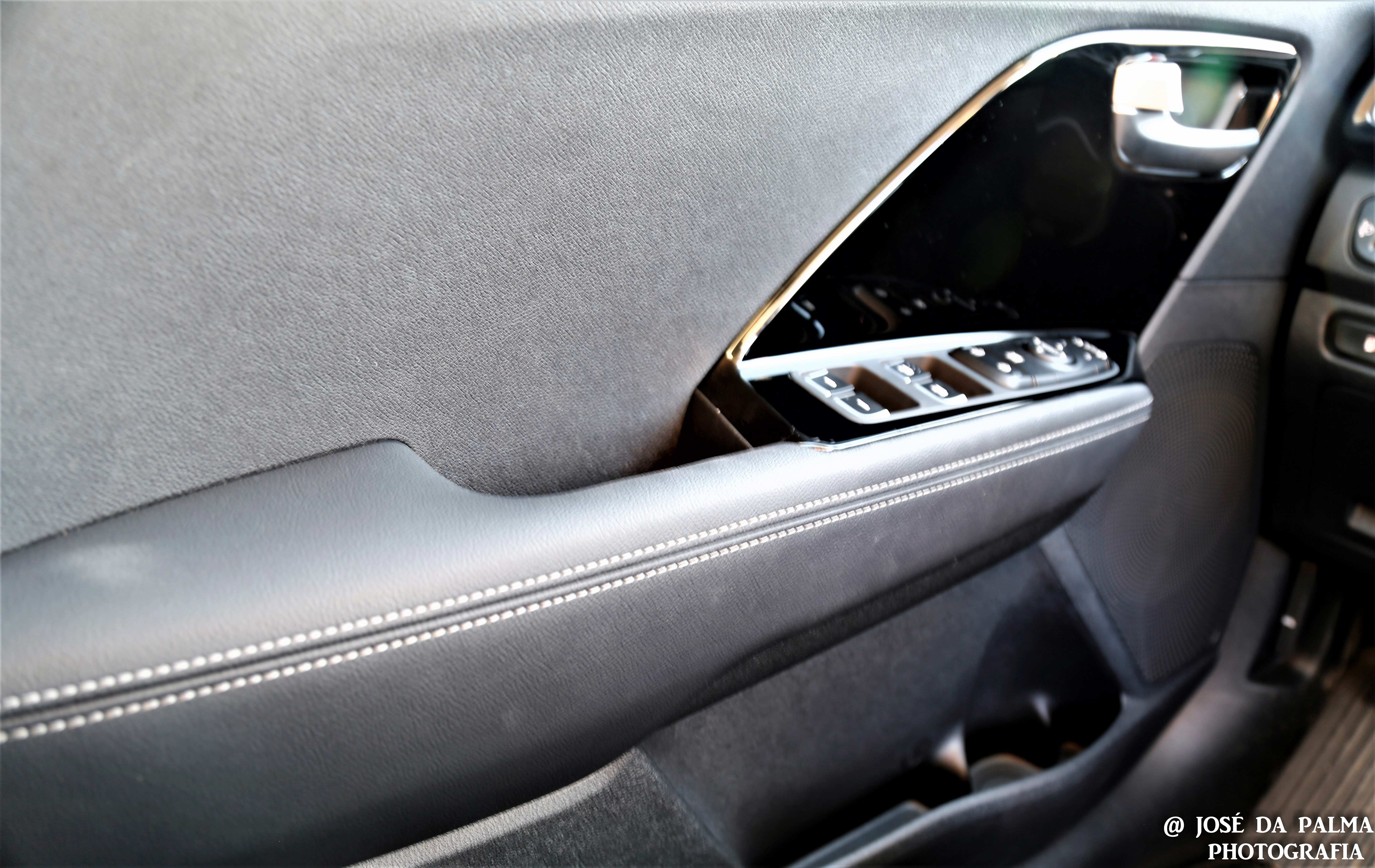 Na segurança contamos com: Cruise control adaptativo, alerta de transposição involuntária de faixa com correcção de volante, aviso de ângulo morto e Hill Assist.