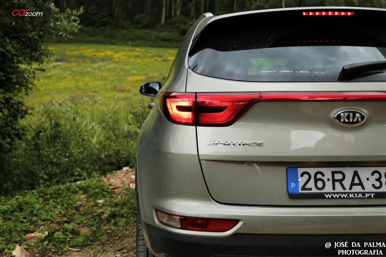 Ao longo da carroçaria contamos com as protecções em plástico que oferecem ao KIA SPORTAGE, não só a capacidade de fazer umas brincadeiras na terra, como, também um ar mais “sólido” e resistente. O spoiler traseiro, os vidros escurecidos atrás, e o formato dos farolins traseiros que formam uma linha sobre toda a tampa da bagageira, acentuam o toque aventureiro e desportivo.