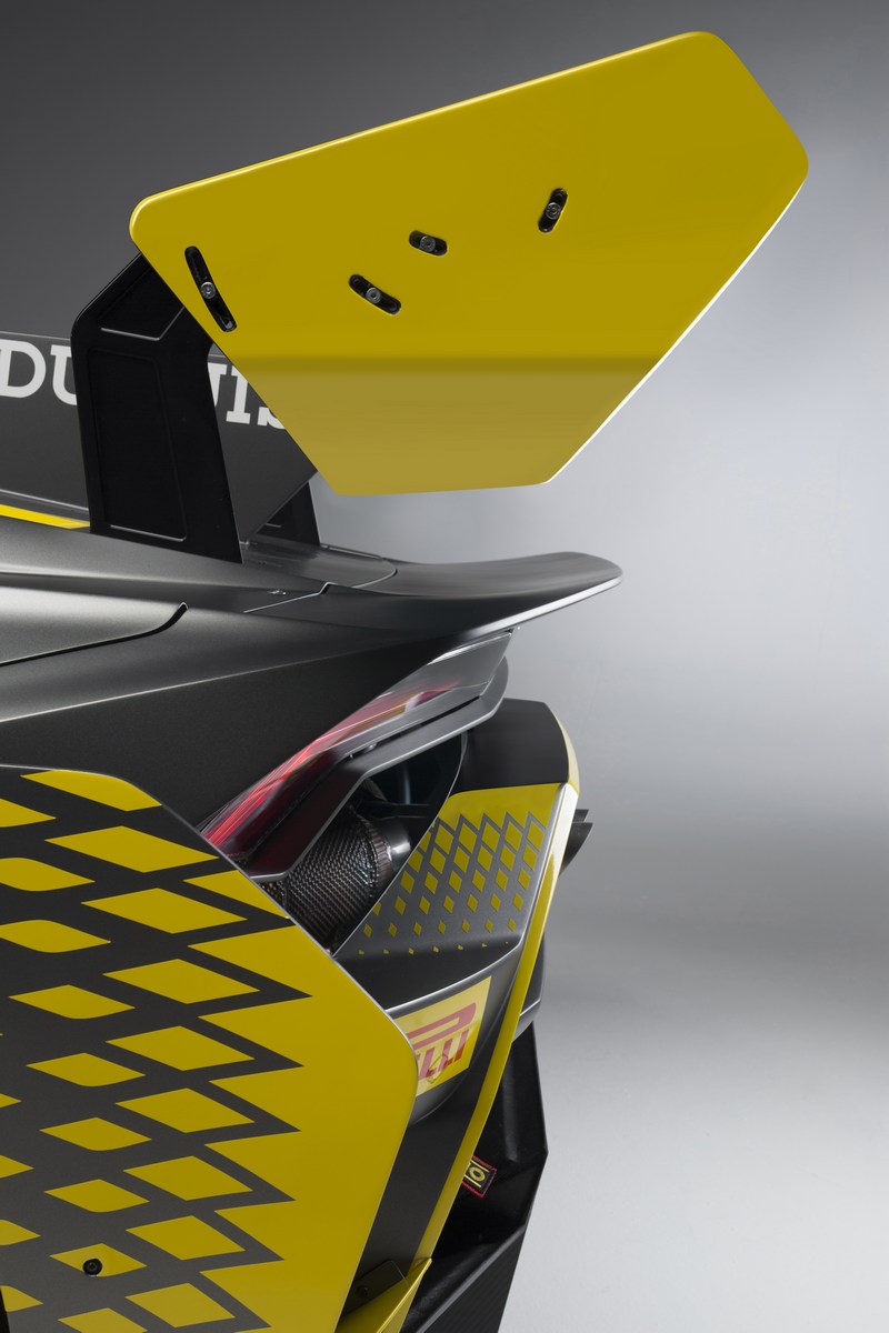 Para atingir esse objetivo, a empresa trabalhou com a Dallara Engineering para desenvolver um novo kit de carroçaria em fibra de carbono que ajuda a melhorar a estabilidade e diminuir a resistência aerodinâmica. As mudanças são bastante significativas, a Lamborghini revela que todos os componentes foram “completamente redesenhados”, excepto as entradas de ar na dianteira e o difusor traseiro.