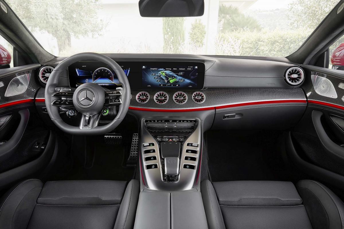 O AMG GT 63 S E PERFORMANCE é o novo porta-estandarte da série de modelos e está particularmente bem equipado. Recebeu todos os aperfeiçoamentos do mais recente facelift, como a suspensão AMG RIDE CONTROL+ com novo sistema de amortecimento. De série está também disponível o adaptado sistema de travões compósitos cerâmicos de elevado desempenho AMG e o sistema multimédia MBUX com ecrãs específicos de um modelo híbrido.