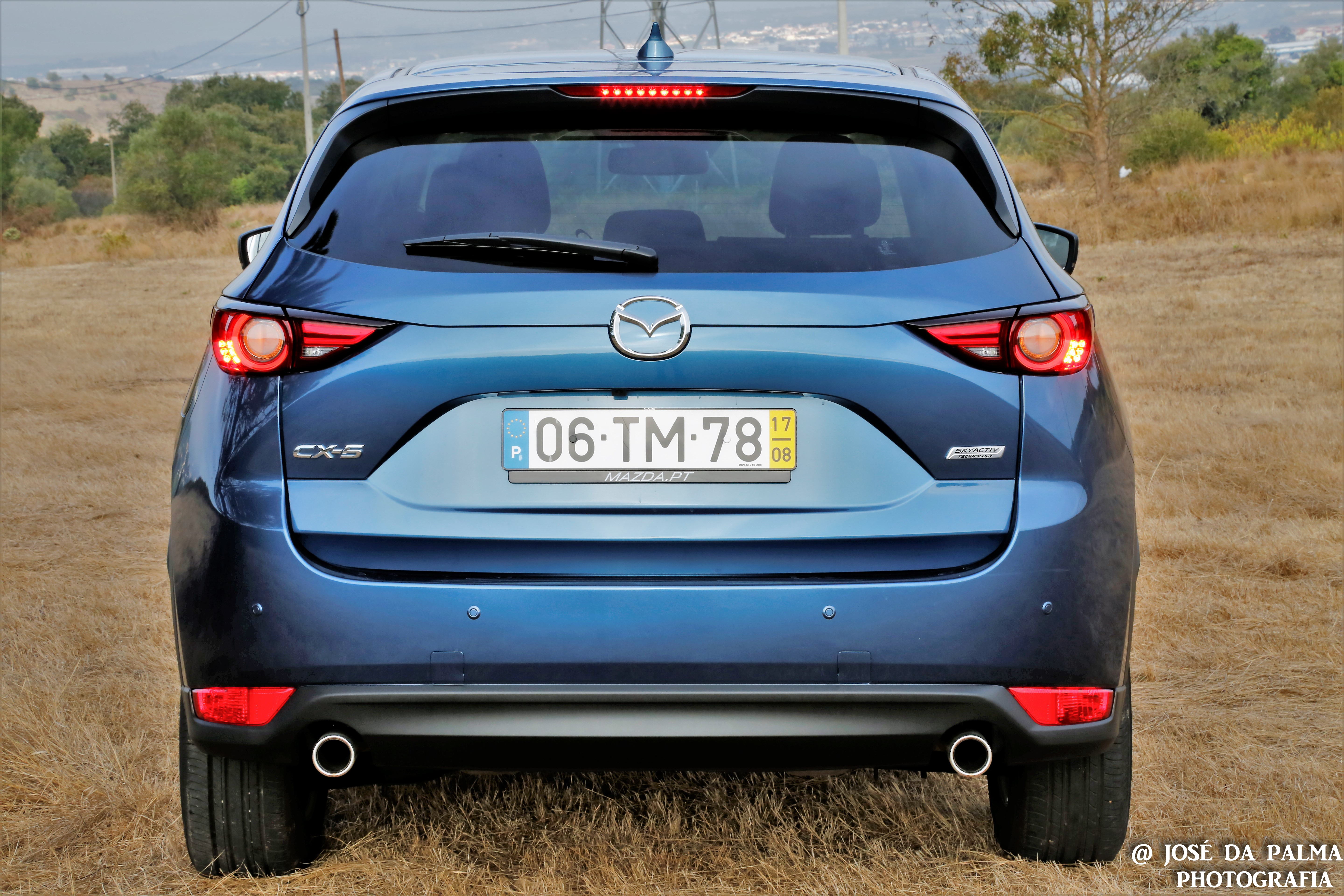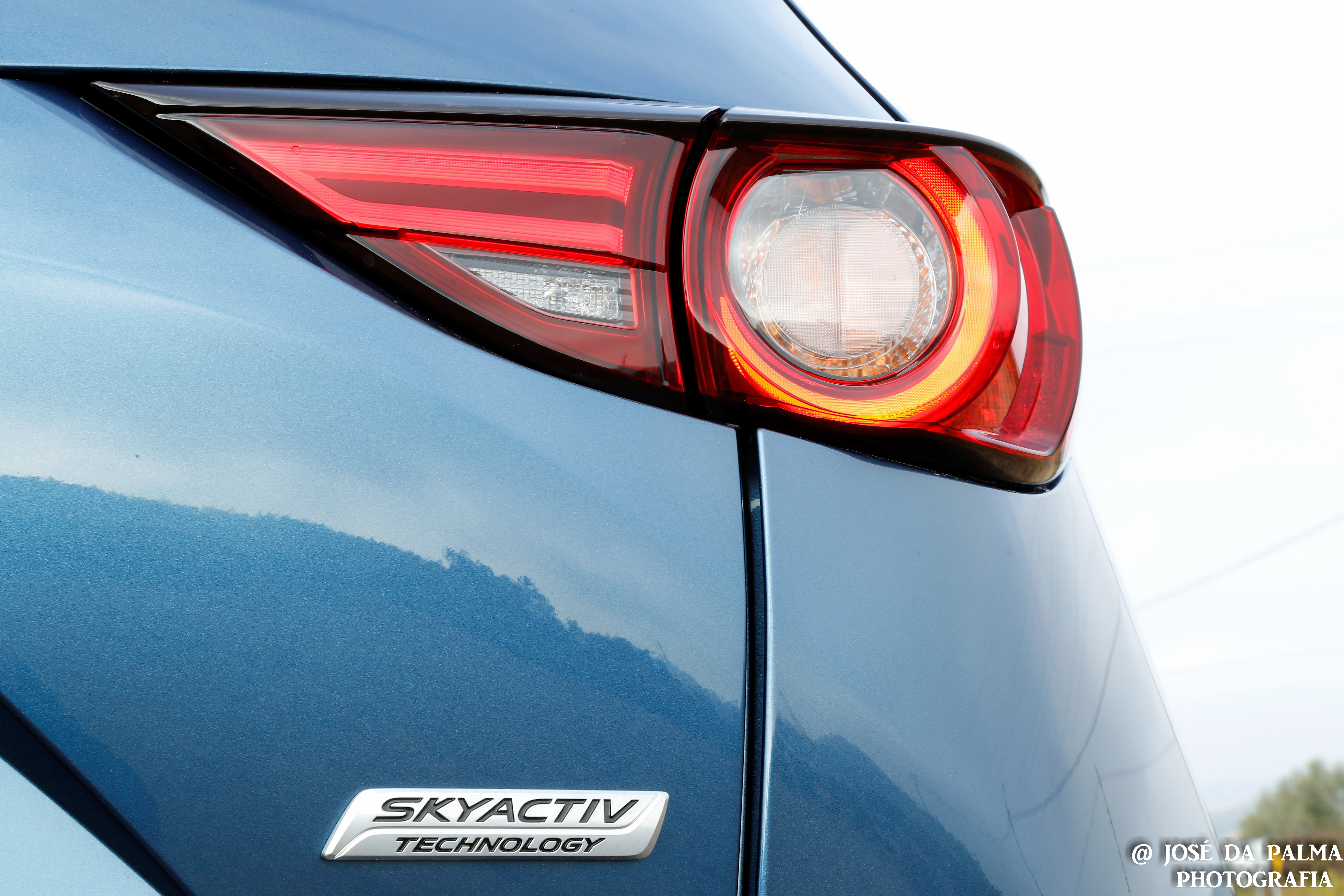 O novo Mazda CX-5 adopta praticamente as mesmas linhas do seu antecessor, continua a ter uma linha de cintura alta e robusta, que lhe oferece uma elegância invulgar, com uma simplicidade que se torna absolutamente sublime. As ópticas estão mais pequenas e são Full-LED, na traseira os farolins rasgam a chapa de forma bastante subtil, numa afirmação de jovialidade e traços desportivos. A grelha é agora mais aberta e é toda preta, do seu interior apenas sobressai o logo da marca nipónica que aparece bem centrado, como se tratasse de uma demonstração de orgulho. Por baixo da grelha contamos com um friso cromado que enfatiza o design da dianteira, oferecendo à grelha um estilo adicional. O capo é comprido e a traseira é alta e saliente, contamos com um spoiler discreto e duas saídas de escape que acentuam o estilo desportivo.