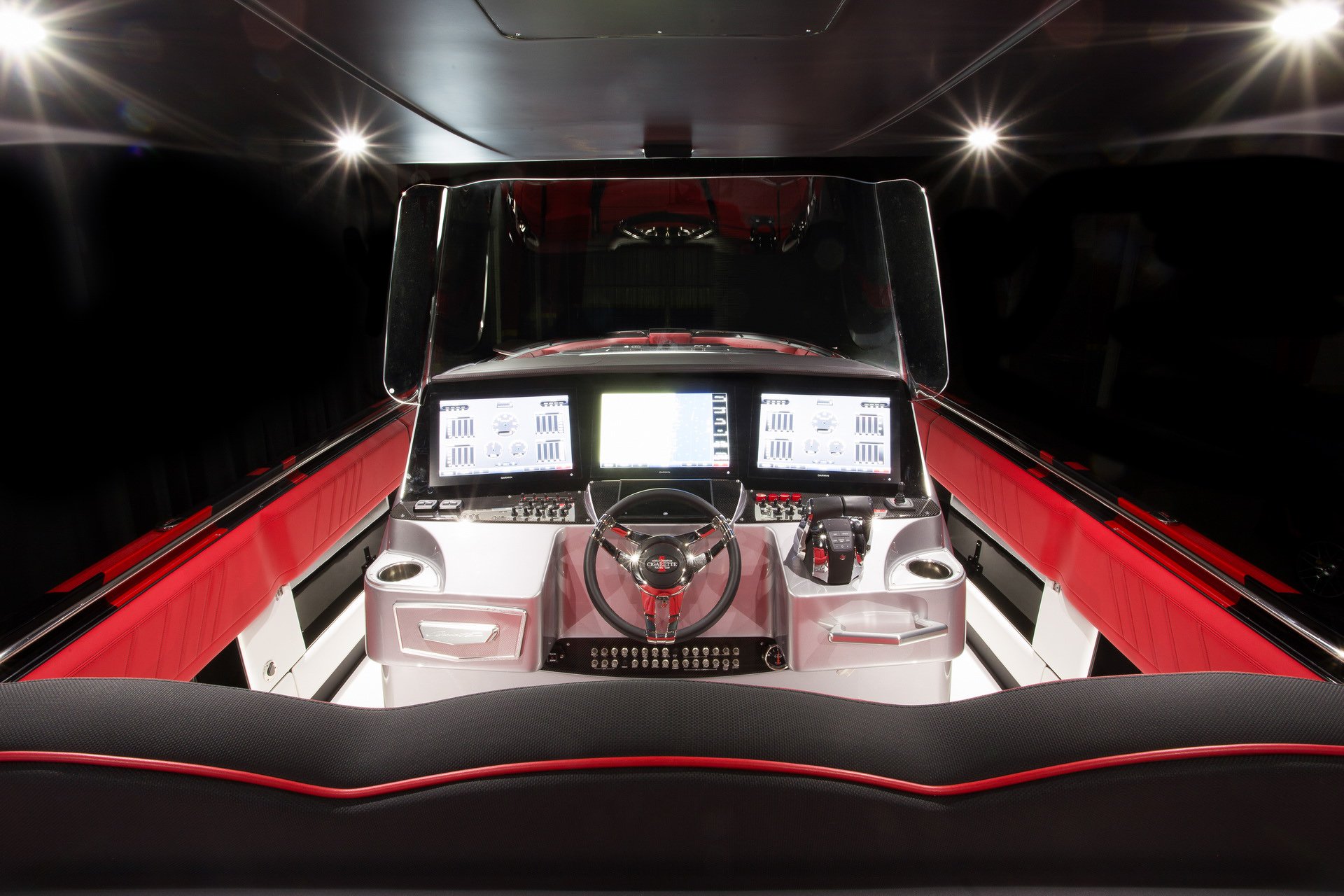 Além da decoração e da leveza na construção que aparece no Mercedes AMG, este barco também tem vários componentes em fibra de carbono que contribuem para um centro de gravidade mais baixo durante manobras a alta velocidade.