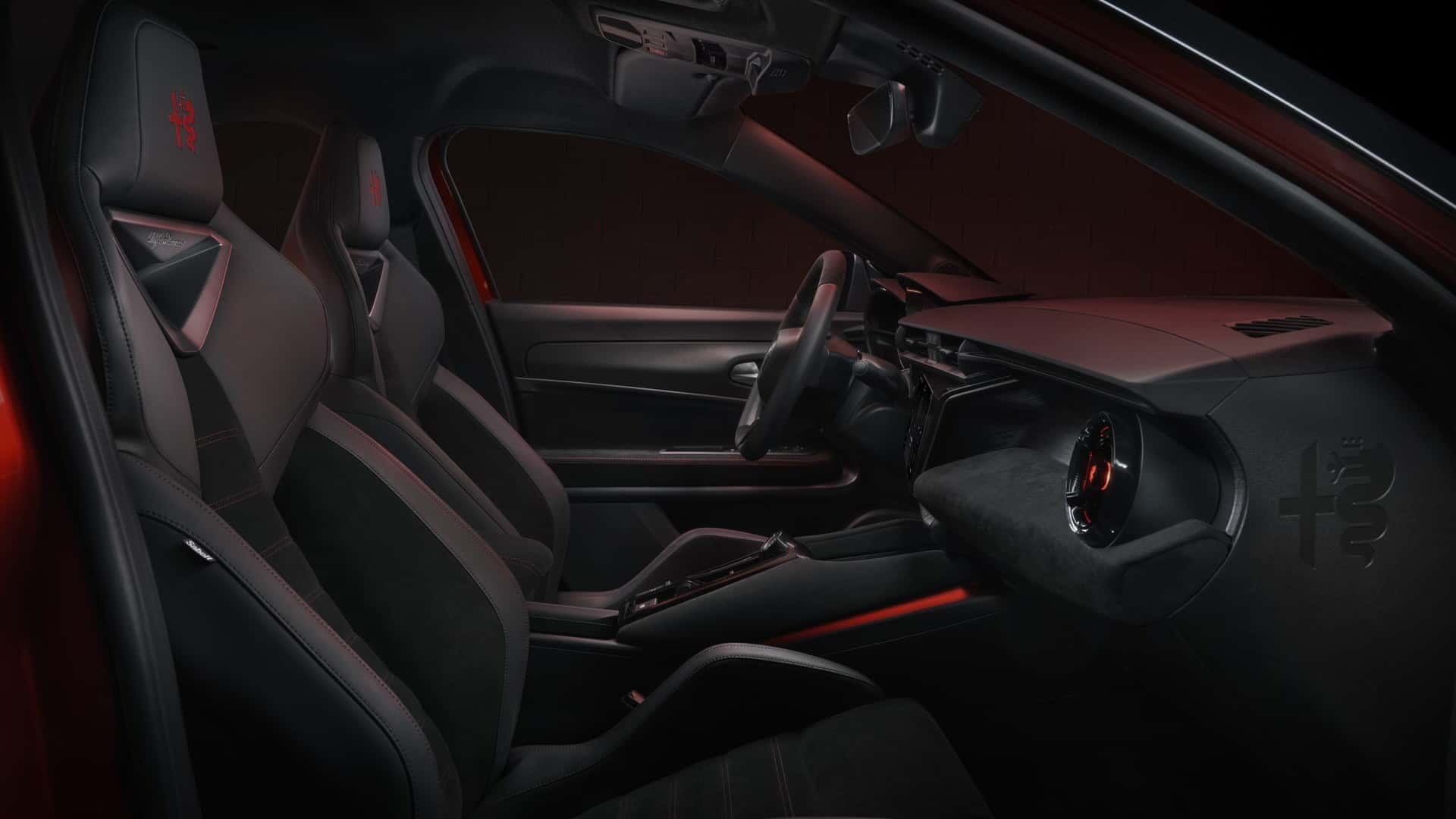A mesma inspiração de pura desportividade pode ser encontrada no interior do automóvel, onde se destacam a atenção italiana a todos os pormenores, a utilização dos melhores materiais e a colocação de todos os comandos ao alcance do condutor, como demonstrado pelo volante compacto, para se adaptar a todos os estilos de condução. Acima de tudo, o painel de instrumentos e o seu histórico design “telescópico” criam essa ligação visual direta e persuadem-no a envolver as suas mãos no volante, a ligar o motor e a tirar o melhor partido de uma experiência de condução única. No centro do painel de instrumentos, o destaque é um ecrã TFT de 10,25″ totalmente digital, para aceder aos dados do automóvel e às definições das tecnologias de condução. No centro do tablier e orientado para o condutor, está um sistema de ecrã tátil de 10,25″ desenvolvido para trabalhar com widgets, com componentes gráficos concebidos para uma interação intuitiva com todas as funcionalidades, que podem ser personalizados através de um simples e rápido movimento de arrastar e largar. Cada utilizador pode criar a sua própria página inicial, onde cada uma das funcionalidades do automóvel é uma aplicação em si. Para embelezar ainda mais o interior, as saídas do ar condicionado têm a forma de um Quadrifoglio (trevo de quatro folhas), o símbolo por excelência da desportividade da Alfa Romeo. Por fim, para chamar a atenção e acolher o condutor, destacam-se os bancos desportivos Sabelt com um encosto envolvente que combina elevada resistência mecânica, ergonomia perfeita e leveza estrutural.