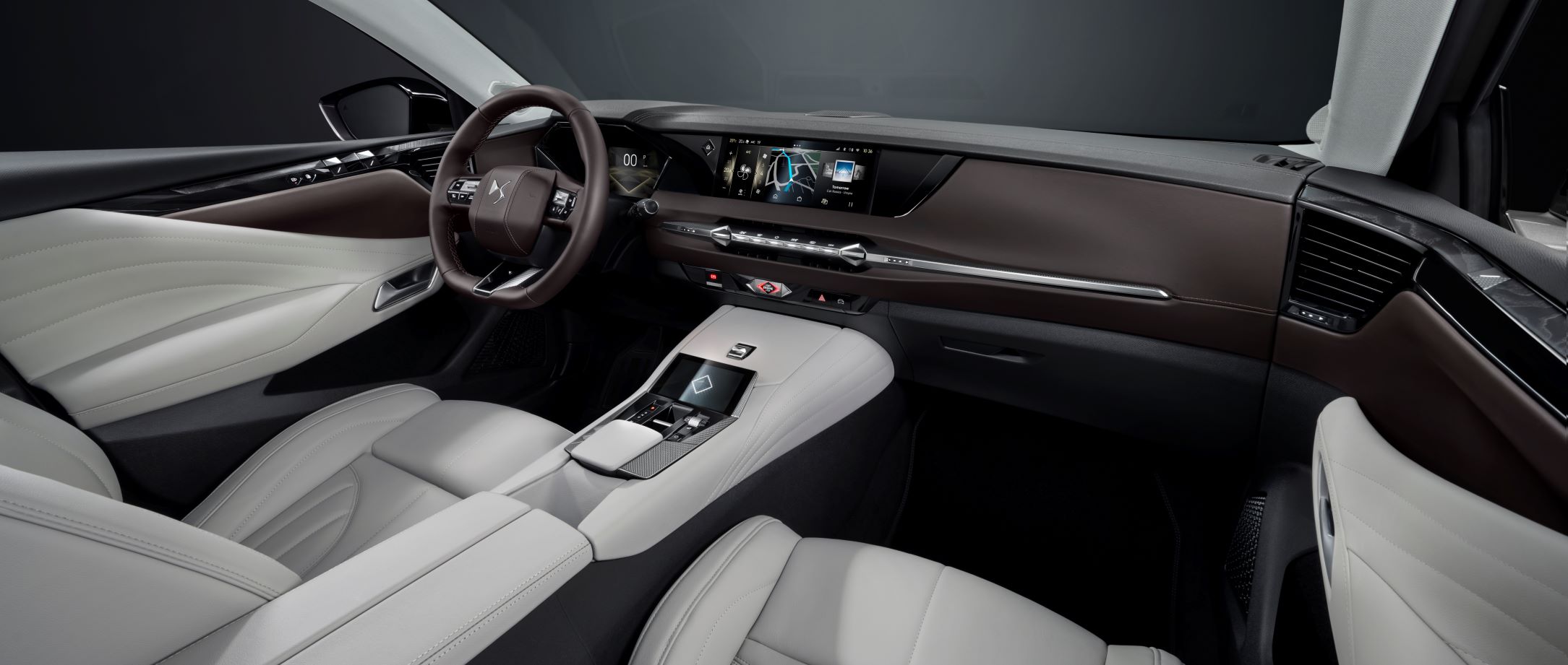 Símbolo do melhor ‘savoir-faire’ da DS Automobiles, o interior do nível de equipamento OPERA compõe-se por bancos em couro Nappa Criollo Brown confecionados em forma de bracelete, de desenho elaborado. As decorações em madeira Frêne Brun (Freixo Castanho) e amplas superfícies em couro Nappa Criollo Brown (Criolo Castanho) completam este universo luxuoso.