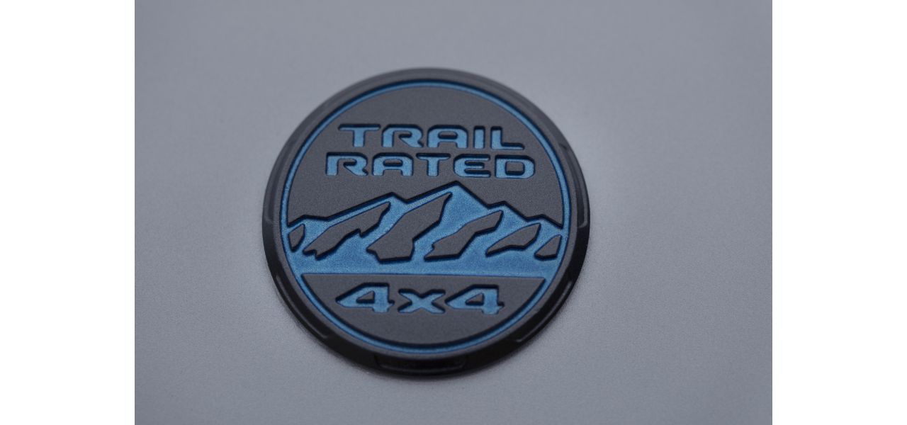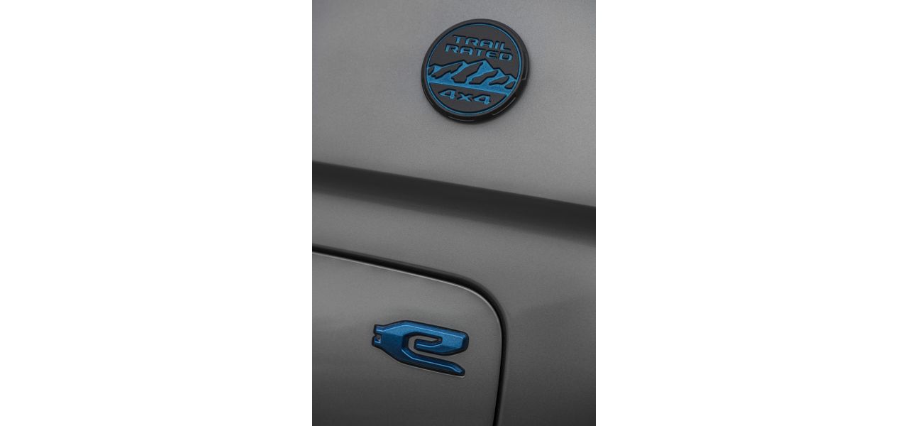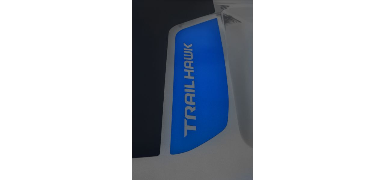 - Decalque “Trailhawk” no capô, em preto e azul mate, antirreflexo