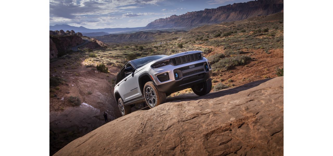 - Mais da sua lendária capacidade todo-o-terreno – o Grand Cherokee com a melhor capacidade 4×4 de sempre, o novo Trailhawk 4xe conquistou o Rubicon Trail em propulsão puramente elétrica; o novo sistema de desconexão da barra estabilizadora, exclusivo da sua classe, permite uma melhor articulação e tração sobre rochas e terreno acidentado