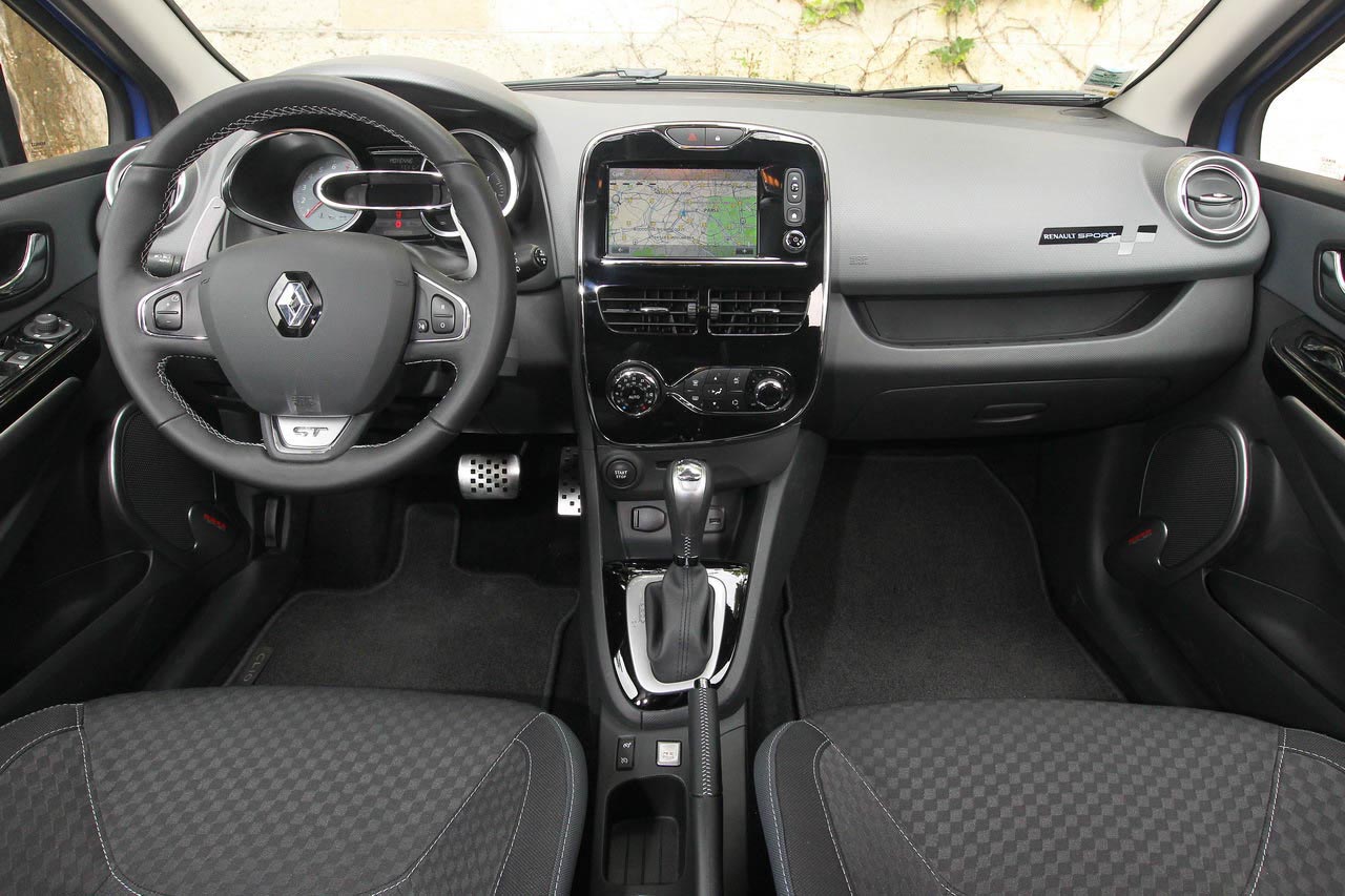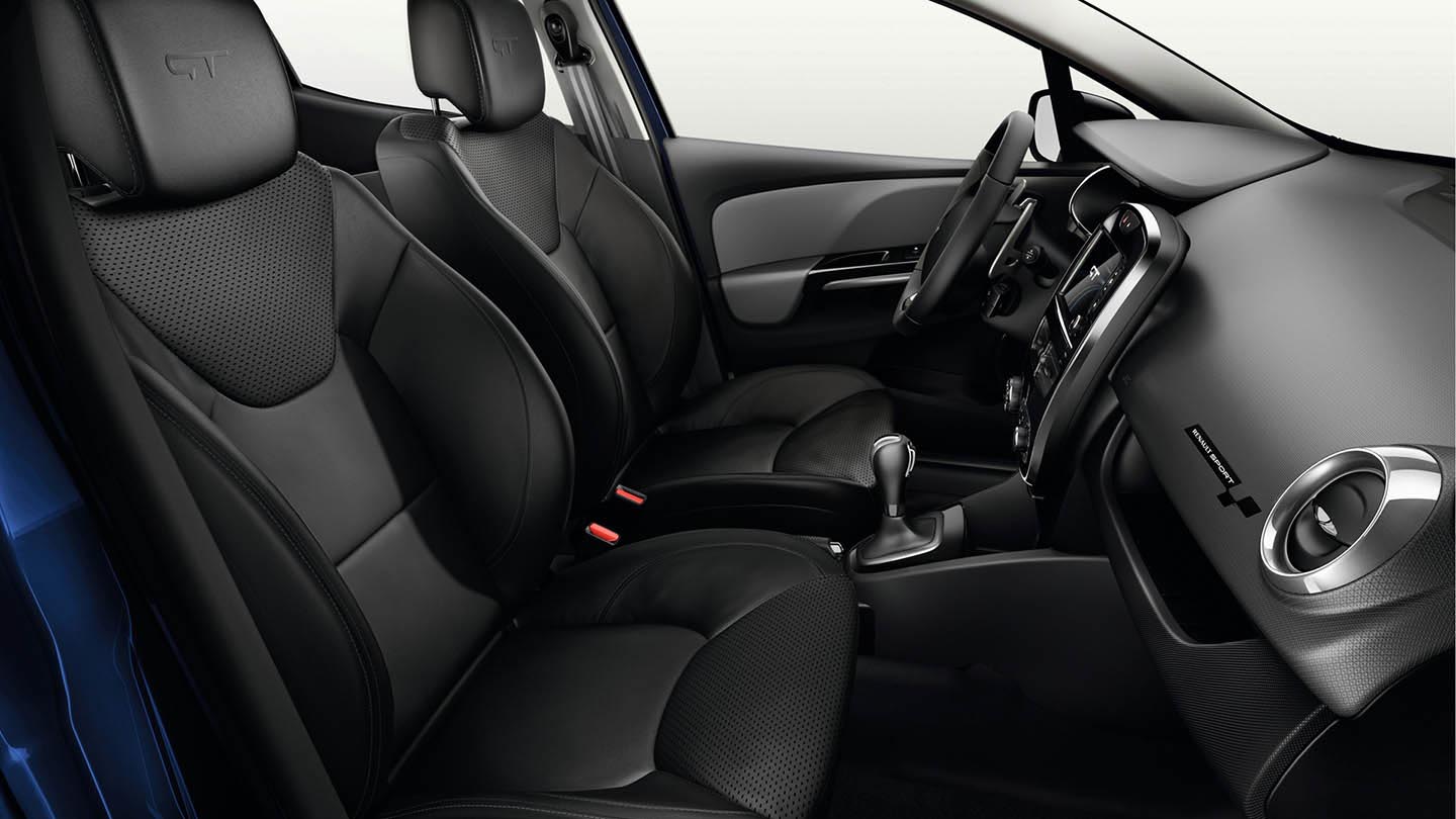 No interior tal como no exterior encontramos um design agradável à vista, assentos com um bom apoio lombar. Volante com a sigla GT e patilhas da caixa de velocidades, cintos de segurança Renault Sport, pedais em aluminio e aplicação Renault Sport no tablier. As cores predominantes são o cinza, as aplicações cromadas e em preto brilhante.