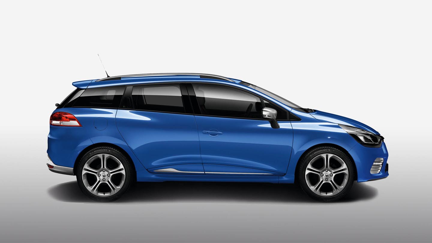 O Renault Clio GT, vem com um design mais desportivo e agressivo que o Clio Normal, jantes 17, capas dos retrovisores cromadas, difusor traseiro com duas saídas de escape, assinatura GT na traseira e detalhes Renault Sport.