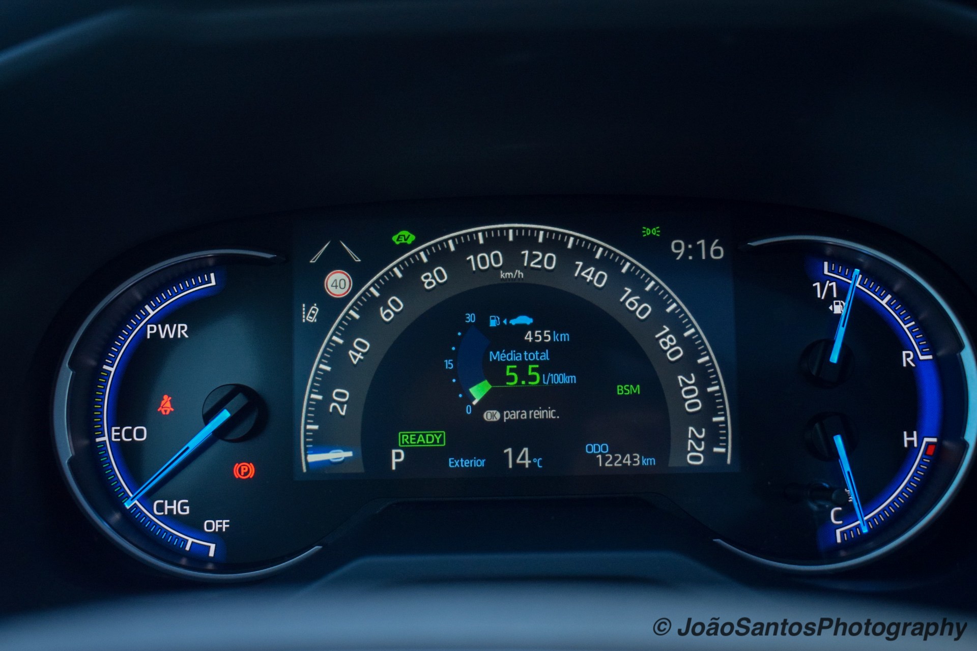 No painel de instrumentos temos muita informação, que aparece com boa definição e é de fácil percepção. Voltam a estar presentes os gráficos relativos à condução e ao fluxo de energia. Mas não é tudo, uma vez que consoante o modo de condução o painel de instrumentos apresenta outra cores, ou um grafismo diferente, quando optamos pelo modo “Trail”. As informações relativas a viagem, estado do automóvel, consumos, entre outras, têm também lugar neste painel de instrumentos completíssimo.