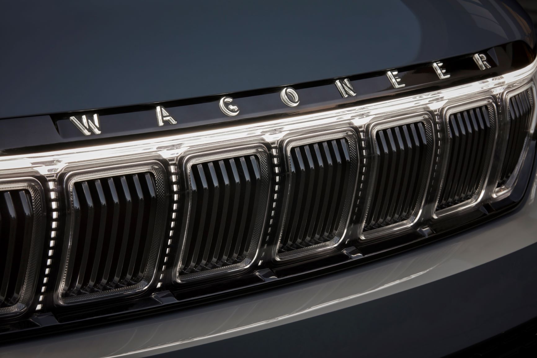 A linha externa do Grand Wagoneer Concept liga-se a uma proeminente grelha em Preto Obsidiana com as icónicas sete aberturas Jeep. Cada abertura apresenta uma complexa treliça de peso reduzido, enquanto o espaço por cima e entre cada abertura é iluminado de modo a criar com LED o desenho do nome da marca. Este padrão com LED forma um elegante contorno da grelha, ajudando a realçar a amplitude da faixa frontal do modelo.